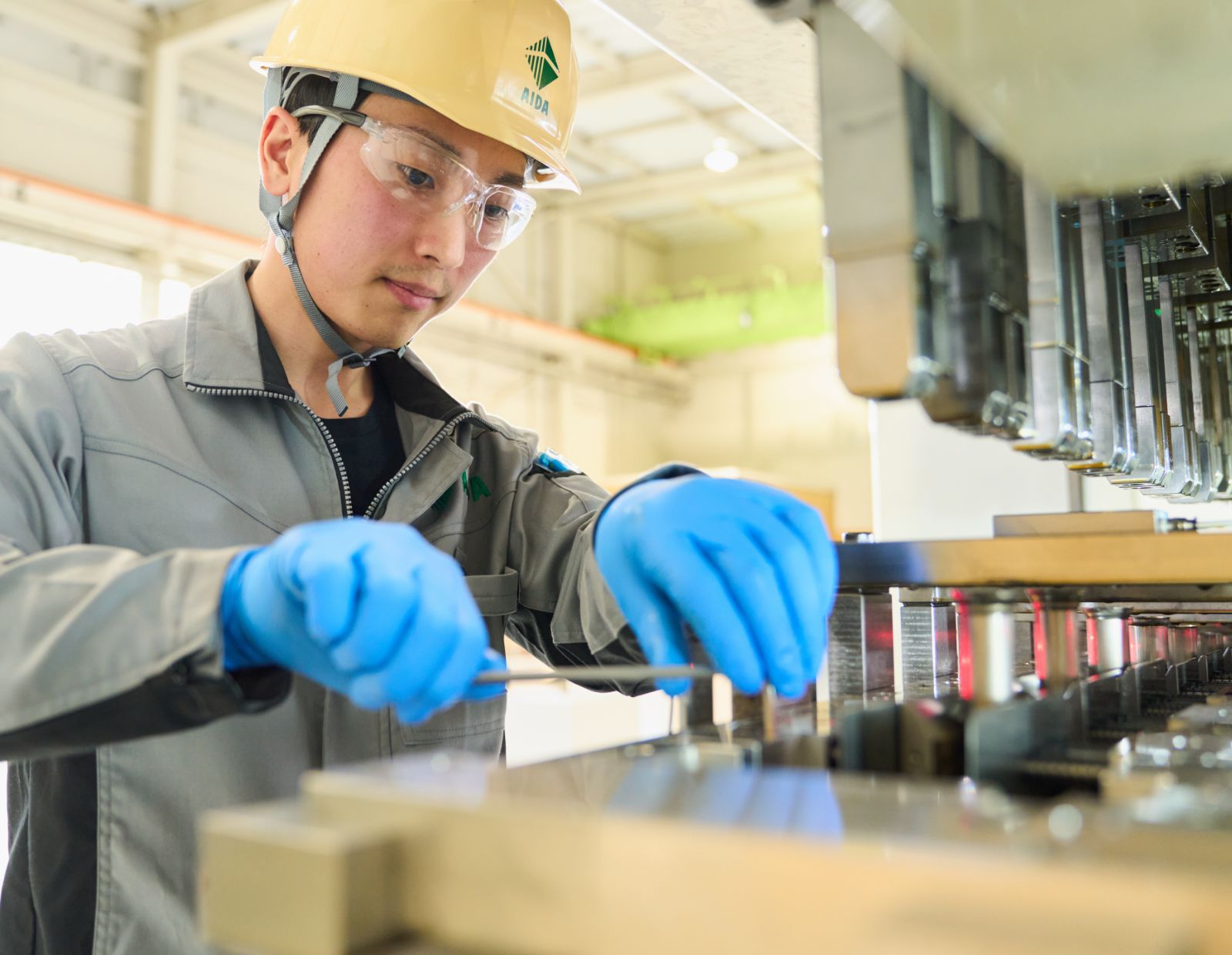 「自分の好きな道を行きなさい」。親には早くからそう言われていたので、高校2年の春、北海道を離れる決意をしました。そして3年の夏、ものづくりに本気で打ち込める会社、将来、海外で働くチャンスがある会社への就職を希望し、アイダエンジニアリングを薦められました。野球部の先輩が加工部門で働いていて、職場の雰囲気や独身寮での生活についても聞いていたので何も不安はなかったですね。夏休みの職場見学で巨大なプレス機を見た瞬間、ここならすべてが叶うと思いました。
