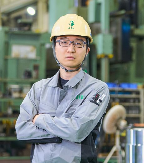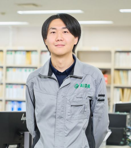 当社を志望したのは、対面(少人数制・時間限定)での工場見学の機会を設けてくれた唯一のメーカーだったからです。私が就職活動を始めたのは、コロナ禍の真っ只中。PCやスマホを介したコミュニケーションには慣れていましたが、オンライン限定の説明会や面接では具体的なイメージをつかむことができずにいました。そのため、感染対策が徹底された本社工場で直接、巨大なプレス機の加工と組み立て作業を見た瞬間、胸が躍りました。そして、プレス機のことをまったく知らなくても、スケールの大きなものづくりに貢献できると確信できた。それがアイダエンジニアリングへの入社を決めた理由です。